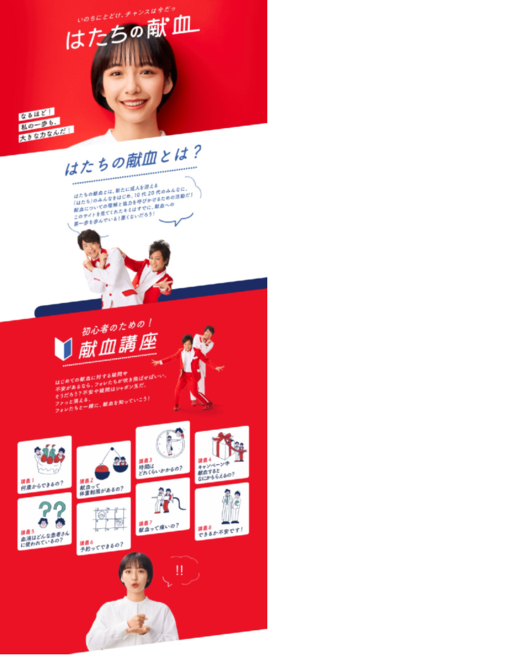 献血に対する漠然とした不安や疑問について、8つの講座をWEB上に作成。